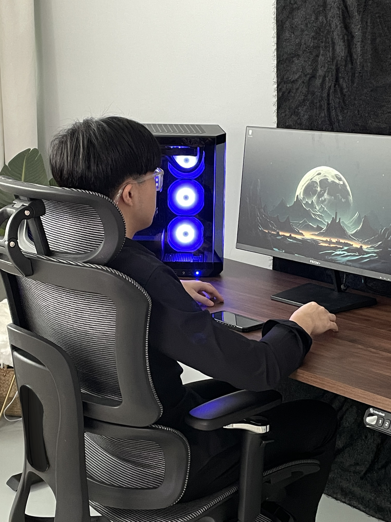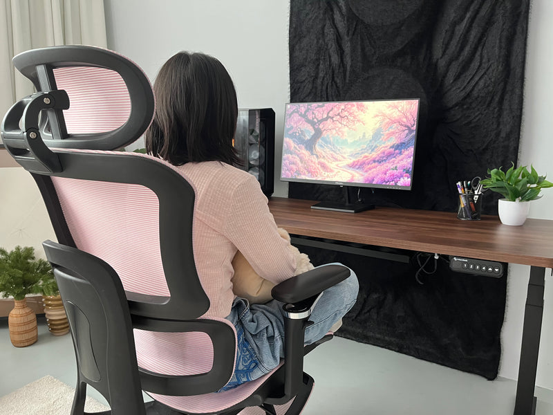 Slide the seat forward or back to fit your legs comfortably, support your thighs properly, and stay aligned through long hours.